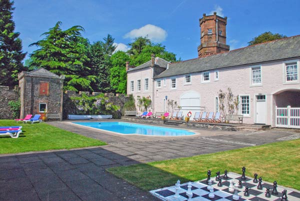 Through an archway from the stable courtyard is the swimming pool courtyard, a sheltered suntrap given a tropical feel by exotic plants such as palms, bananas (yes!), Tetrapanax and many more. It's a popular place to stretch out (see below, Loungers & Deck Chairs).
