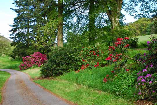 Even a shortish walk on the estate can take in a rich mix of pasture, hill, woodland, coast - the pictures (right) give a flavour: come with us on a virtual walk from the courtyard up Torglass hill, and much more ...