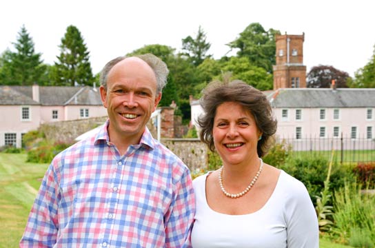 The Scotts live in Gelston House, formerly the head gardener's house, adjoining the Gelston Castle stable courtyard and walled garden complex.